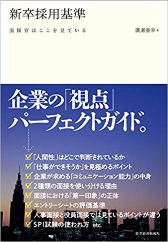 Shouが読んだ書籍 新卒採用基準: 面接官はここを見ている 2017.08.28 やまもと社長 (画像をクリックでAmazonへ) ■タイトル:新卒採用基準: 面接官はここを見ている ■著者 :廣瀬 泰幸
